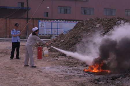 此次演习的宗旨是让即将进入新车间工作的员工提前熟悉工作环境,了解新环境中的消防器材、消防设施的陈列位置及使用方法,加强职工的消防意识,提高职工在紧急情况下的应急能力和自我防护能力。整个演习分为两个阶段,一是让演习职工参观新建的包装车间及灌装车间,并了解新车间消防器材的存放位置及主要性能;二是由安保部部长黄卫国组织参演员工现场演练相关消防器材的使用要领,并检验其消防栓、灭火器等消防器材的安全性能。